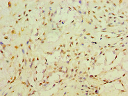 Immunohistochemistry of paraffin-embedded human breast cancer using CSB-PA019572DSR1HU at dilution of 1:100