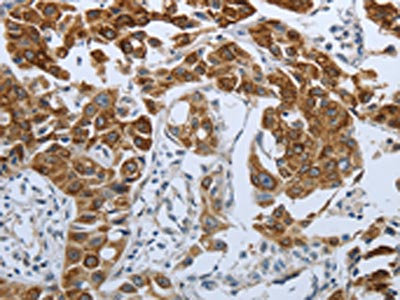 The image on the left is immunohistochemistry of paraffin-embedded Human lung cancer tissue using CSB-PA090129(RETN Antibody) at dilution 1/20, on the right is treated with fusion protein. (Original magnification: ×200)