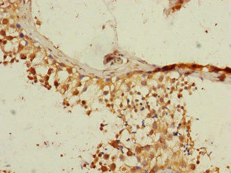 • Immunohistochemistry of paraffin-embedded human testis tissue using CSB-PA019646ESR2HU at dilution of 1:100