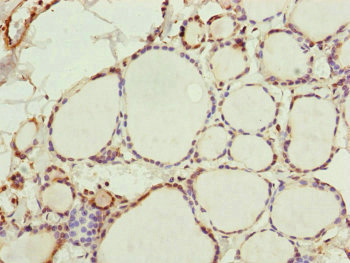 • Immunohistochemistry of paraffin-embedded human thyroid tissue using CSB-PA019821ESR2HU at dilution of 1:100