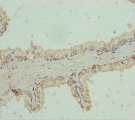 Immunohistochemistry of paraffin-embedded human prostate cancer using CSB-PA856886ESR1HU at dilution of 1:100