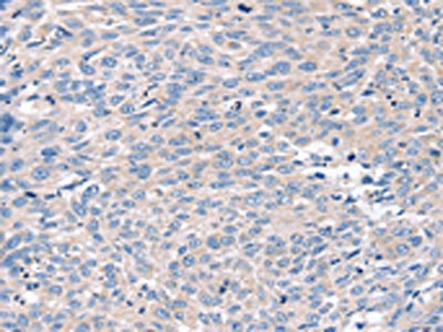 The image on the left is immunohistochemistry of paraffin-embedded Human prostate cancer tissue using CSB-PA993257(ROR1 Antibody) at dilution 1/35, on the right is treated with synthetic peptide. (Original magnification: ×200)