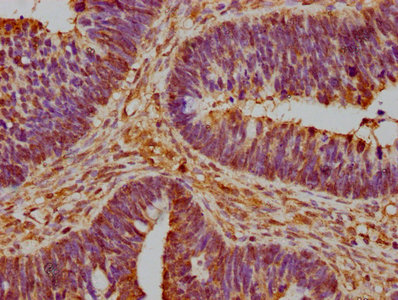 IHC image of CSB-PA020207LA01HU diluted at 1:600 and staining in paraffin-embedded human ovarian cancer performed on a Leica BondTM system. After dewaxing and hydration, antigen retrieval was mediated by high pressure in a citrate buffer (pH 6.0). Section was blocked with 10% normal goat serum 30min at RT. Then primary antibody (1% BSA) was incubated at 4°C overnight. The primary is detected by a biotinylated secondary antibody and visualized using an HRP conjugated SP system.