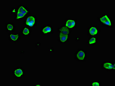 • Immunofluorescent analysis of MCF-7 cells using CSB-PA020463LA01HU at dilution of 1:100 and Alexa Fluor 488-congugated AffiniPure Goat Anti-Rabbit IgG(H+L)
