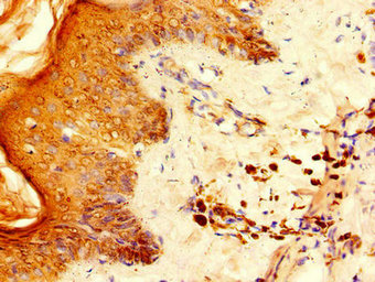 • Immunohistochemistry of paraffin-embedded human skin tissue using CSB-PA020463LA01HU at dilution of 1:100