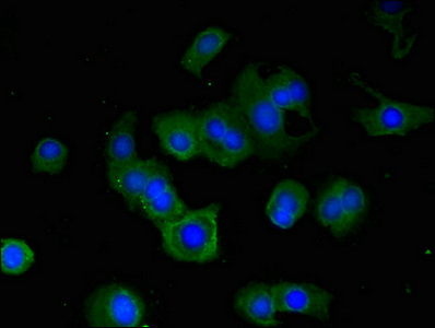 Immunofluorescent analysis of MCF-7 cells using CSB-PA020468LA01HU at dilution of 1:100 and Alexa Fluor 488-congugated AffiniPure Goat Anti-Rabbit IgG(H+L)