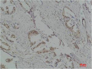 • Immunohistochemical analysis of paraffin-embedded Human Breast Carcinoma using p70 S6 kinase α Polyclonal Antibody.