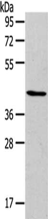 • Gel: 8%SDS-PAGE,Lysate: 40 μg,,Primary antibody: CSB-PA059522(RUNX2 Antibody) at dilution 1/105 dilution,Secondary antibody: Goat anti rabbit IgG at 1/8000 dilution,Exposure time: 2 minutes