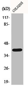 • Western Blot analysis of COLO205 cells using EDG-5 Polyclonal Antibody