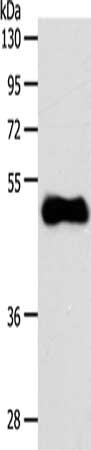 Gel: 10%SDS-PAGE, Lysate: 40 μg, Lane: Human fetal brain tissue, Primary antibody: CSB-PA682555(S1PR3 Antibody) at dilution 1/700, Secondary antibody: Goat anti rabbit IgG at 1/8000 dilution, Exposure time: 20 seconds