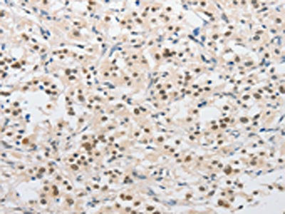 The image on the left is immunohistochemistry of paraffin-embedded Human cervical cancer tissue using CSB-PA897667(SAE1 Antibody) at dilution 1/15, on the right is treated with fusion protein. (Original magnification: ×200)