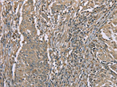 The image on the left is immunohistochemistry of paraffin-embedded Human cervical cancer tissue using CSB-PA481049(SASH1 Antibody) at dilution 1/40, on the right is treated with synthetic peptide. (Original magnification: ×200)