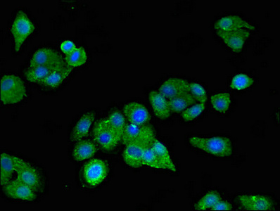 Immunofluorescent analysis of HepG2 cells using CSB-PA619859LA01HU at dilution of 1:100 and Alexa Fluor 488-congugated AffiniPure Goat Anti-Rabbit IgG(H+L)