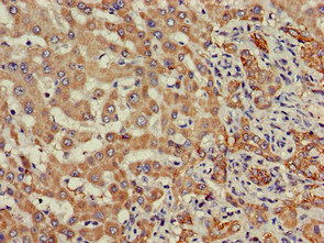 Immunohistochemistry of paraffin-embedded human liver cancer using CSB-PA327046HA01HU at dilution of 1:100