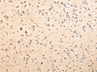 The image on the left is immunohistochemistry of paraffin-embedded Human brain tissue using CSB-PA557065(SDCBP Antibody) at dilution 1/40, on the right is treated with fusion protein. (Original magnification: ×200)