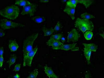 • Immunofluorescent analysis of U251 cells using CSB-PA11239A0Rb at dilution of 1:100 and Alexa Fluor 488-congugated AffiniPure Goat Anti-Rabbit IgG(H+L)