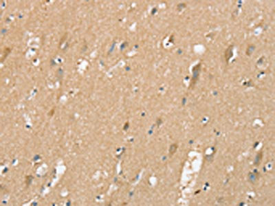 • The image on the left is immunohistochemistry of paraffin-embedded Human brain tissue using CSB-PA235687(SIGLEC10 Antibody) at dilution 1/25, on the right is treated with synthetic peptide. (Original magnification: ×200)