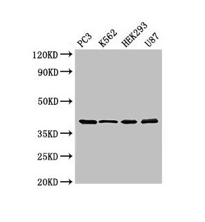 Positive WB detected in: PC-3 whole cell lysate, K562 whole cell lysate, HEK293 whole cell lysate, U87 whole cell lysate