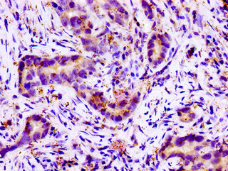 Immunohistochemistry of paraffin-embedded human pancreatic cancer using CSB-PA021381LA01HU at dilution of 1:100