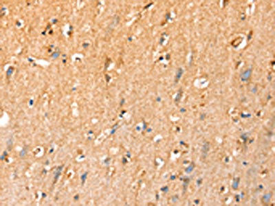 • The image on the left is immunohistochemistry of paraffin-embedded Human brain tissue using CSB-PA265169(SLC25A3 Antibody) at dilution 1/35, on the right is treated with synthetic peptide. (Original magnification: ×200)