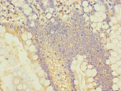 Immunohistochemistry of paraffin-embedded human small intestine tissue using CSB-PA021510LA01HU at dilution of 1:100