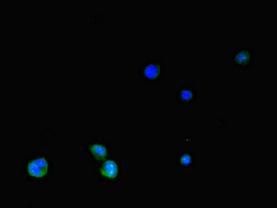 • Immunofluorescent analysis of HepG2 cells using CSB-PA021553LA01HU at dilution of 1:100 and Alexa Fluor 488-congugated AffiniPure Goat Anti-Rabbit IgG(H+L)