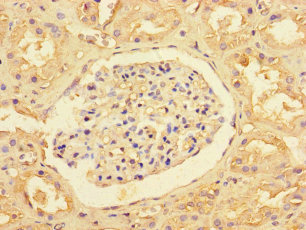 • Immunohistochemistry of paraffin-embedded human kidney tissue using CSB-PA843146LA01HU at dilution of 1:100