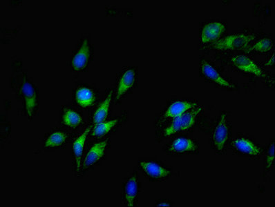 • Immunofluorescent analysis of Hela cells using CSB-PA843146LA01HU at dilution of 1:100 and Alexa Fluor 488-congugated AffiniPure Goat Anti-Rabbit IgG(H+L)
