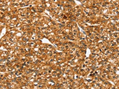 The image on the left is immunohistochemistry of paraffin-embedded Human brain tissue using CSB-PA989446(SLC4A7 Antibody) at dilution 1/25, on the right is treated with synthetic peptide. (Original magnification: ×200)