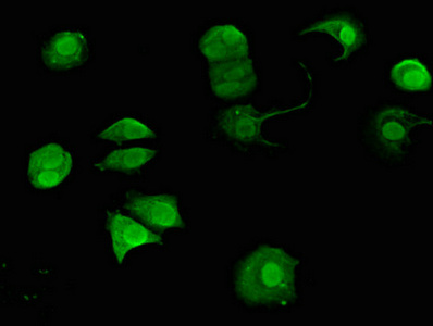 • Immunofluorescent analysis of MCF-7 cells using CSB-PA842743LA01HU at dilution of 1:100 and Alexa Fluor 488-congugated AffiniPure Goat Anti-Rabbit IgG(H+L)