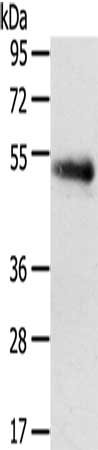 • Gel: 8%SDS-PAGE, Lysate: 40 μg, Lane: 823 cells, Primary antibody: CSB-PA157177(SLC7A5 Antibody) at dilution 1/250, Secondary antibody: Goat anti rabbit IgG at 1/8000 dilution, Exposure time: 2 minutes