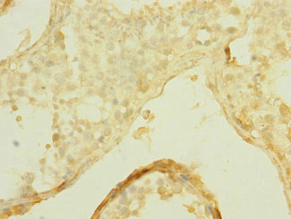 Immunohistochemistry of paraffin-embedded human testis tissue using CSB-PA021746ESR1HU at dilution of 1:100