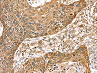 The image on the left is immunohistochemistry of paraffin-embedded Human esophagus cancer tissue using CSB-PA174716(SMC4 Antibody) at dilution 1/35, on the right is treated with synthetic peptide. (Original magnification: ×200)