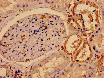 Immunocytochemistry analysis of human kidney tissue using CSB-PA885725YA01HU at dilution of 1:100