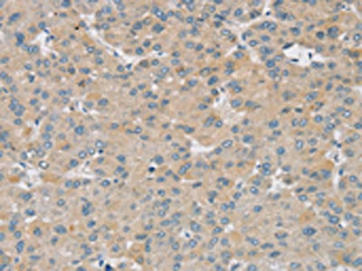 • The image on the left is immunohistochemistry of paraffin-embedded Human liver cancer tissue using CSB-PA169309(SMOC2 Antibody) at dilution 1/30, on the right is treated with synthetic peptide. (Original magnification: ×200)