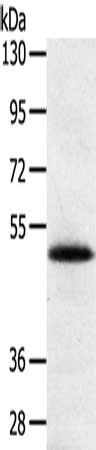 • Gel: 8%SDS-PAGE, Lysate: 40 μg, Lane: Human placenta tissue, Primary antibody: CSB-PA169309(SMOC2 Antibody) at dilution 1/250, Secondary antibody: Goat anti rabbit IgG at 1/8000 dilution, Exposure time: 5 minutes