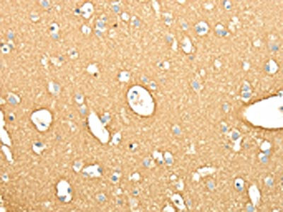 • The image on the left is immunohistochemistry of paraffin-embedded Human brain tissue using CSB-PA585168(SNAP25 Antibody) at dilution 1/25, on the right is treated with fusion protein. (Original magnification: ×200)