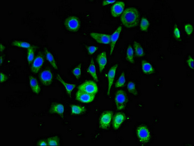 Immunofluorescent analysis of PC-3 cells using CSB-PA022332LA01HU at dilution of 1:100 and Alexa Fluor 488-congugated AffiniPure Goat Anti-Rabbit IgG(H+L)