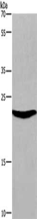 • Gel: 8%SDS-PAGE, Lysate: 40 μg, Lane: Mouse heart tissue, Primary antibody: CSB-PA938450(SOCS3 Antibody) at dilution 1/300, Secondary antibody: Goat anti rabbit IgG at 1/8000 dilution, Exposure time: 20 seconds