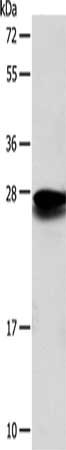 • Gel: 12%SDS-PAGE, Lysate: 40 μg, Lane: Mouse liver tissue, Primary antibody: CSB-PA112138(SOD2 Antibody) at dilution 1/650, Secondary antibody: Goat anti rabbit IgG at 1/8000 dilution, Exposure time: 30 seconds