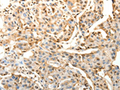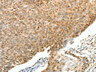 The image on the left is immunohistochemistry of paraffin-embedded Human cervical cancer tissue using CSB-PA269500(SPAG8 Antibody) at dilution 1/25, on the right is treated with fusion protein. (Original magnification: ×200)