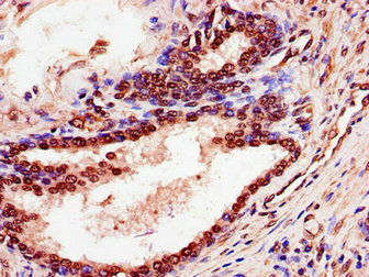 Immunohistochemistry of paraffin-embedded human prostate cancer using CSB-PA022518LA01HU at dilution of 1:100