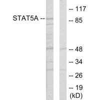 • Western blot analysis of extracts from 293 cells, using STAT5A antibody.