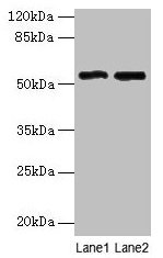 Predicted band size: 55, 56, 51 kDa