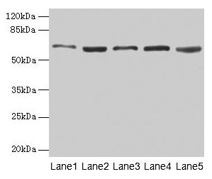 Predicted band size: 63, 69, 60 kDa
