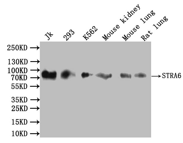 Positive WB detected in: JK whole cell lysate, 293 whole cell lysate, K562 whole cell lysate, Mouse kidney tissue lysate, Mouse lung tissue lysate, Rat lung tissue lysate