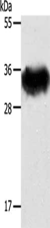 • Gel: 12%SDS-PAGE, Lysate: 40 μg, Lane: Mouse brain tissue, Primary antibody: CSB-PA922926(STX1A Antibody) at dilution 1/600, Secondary antibody: Goat anti rabbit IgG at 1/8000 dilution, Exposure time: 10 seconds