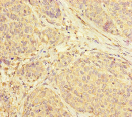 Immunohistochemistry of paraffin-embedded human ovarian cancer using CSB-PA868398ESR2HU at dilution of 1:100