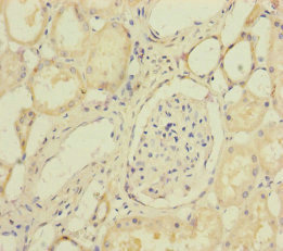 Immunohistochemistry of paraffin-embedded human kidney tissue using CSB-PA868398ESR2HU at dilution of 1:100