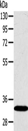 Gel: 8%SDS-PAGE, Lysate: 40 μg, Lane: Human fetal liver tissue, Primary antibody: CSB-PA233200(SULT2A1 Antibody) at dilution 1/650, Secondary antibody: Goat anti rabbit IgG at 1/8000 dilution, Exposure time: 1 second